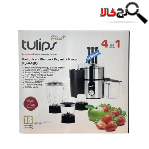آبمیوه گیری تولیپس FJ-480 دارای چهار کاربرد مختلف است. علاوه بر استفاده برای آبگیری از میوه ها، این ماشین دارای قابلیت مخلوط کردن، آسیاب کردن، و خرد کردن نیز می باشد. به همین دلیل، می توان این دستگاه را یکی از محبوبترین و کاربردیترین دستگاهها در خانه دانست. این محصول توسط برند تولیدی تولیپس عرضه شده است که یک برند معتبر ایرانی به حساب میآید و در تولید انواع لوازم خانگی برجسته است. جنس بدنه این محصول از استیل بوده و دارای ویژگی ضد زنگ می باشد، همچنین از مقاومت بسیار بالایی برخوردار است.