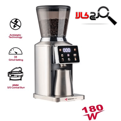 توان مصرفی ۱۸۰ وات در این مدل قدرت کافی برای آسیاب یکنواخت دانههای قهوه را فراهم میکند در حالی که مصرف برق بسیار کمی دارد. جنس بدنه استیل ضدخش ظاهری لوکس و ماندگار به دستگاه داده و در برابر ضربه یا تغییر رنگ مقاوم است. وزن و طراحی متعادل آن نیز باعث شده حتی در هنگام کار با سرعت بالا، دستگاه روی سطح بدون لغزش عمل کند؛ وجود پایههای ضدلغزش در پایین دستگاه به ثبات بیشتر آن کمک میکند.