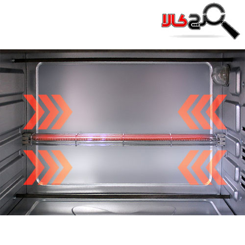 دارای سینی شیشه ایی و شیشه جلو از جنس پیرکس مقاوم در برابر حرارت و ضربه