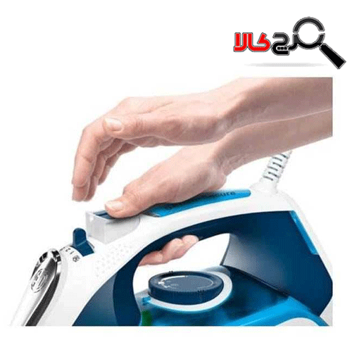 علاوه بر دکمه بخار در قسمت جلوی اتو، خروجی اسپری آب نیز در نظر گرفته شده است تا در صورت نیاز، بتوانید آبپاشی روی پارچه و لباس انجام داده و سپس آنها را اتو کنید. این اتو بخار دارای دکمه و دستهی بزرگی است که طراحی شده تا با دست کاربر سازگار باشد و به عنوان یک اتو بخار با طراحی ارگونومیک شناخته شود. اگر وزن اتو بخار برای شما اهمیت دارد، این دستگاه با وزن تنها 1.8 کیلوگرم، جزو اتو بخارهایی با وزن متوسط محسوب میشود و به راحتی میتوانید روی هر نوع لباسی اتو بزنید. دو دکمه کنار هم روی دسته این اتو بخار وجود دارد که به صورت فشاری برای اسپری و بخار عمل میکند.