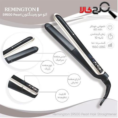 اتو مو رمینگتون S9500 شما با طراحی زیبا و کاربرپسندی بهره مند خواهید شد. طراحی گل روی دسته، رنگ مشکی بدنه با لبه های سفید، نظر شما را به خود جلب خواهد کرد. این اتو با صفحات باریک به طول 110 میلی متر، برای افرادی با موهای کوتاه و چتری، بسیار مناسب است. ابعاد کوچک، طراحی خوش دست و سبک وزن، باعث شده تا حین استفاده، دست خسته نشود.