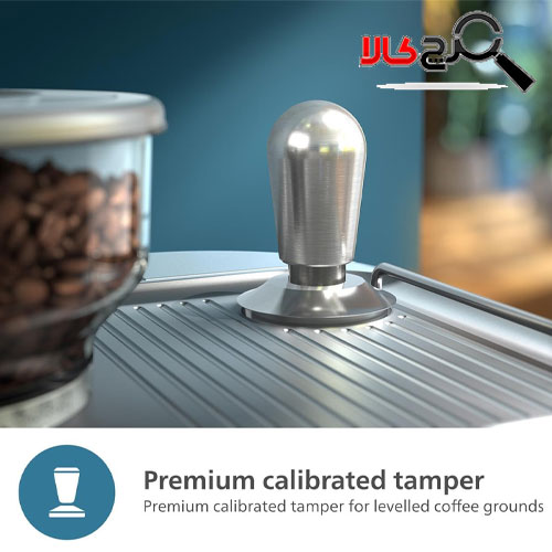 تمپر قهوه: دانه های آسیاب شده قهوه خود با استفاده از تمپر قهوه استیل ضد زنگ، بدون دردسر چسبانید. با کوبش مناسب، از سطح کوبش متعادل و مرتبی لذت ببرید تا تجربه دم کردن قهوه شما با دقت و سهولت بیشتری همراه باشد.اسپرسوساز فیلیپس