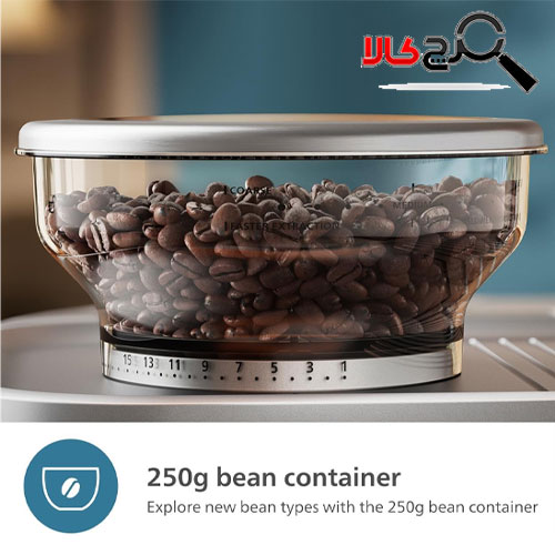 آسیاب مخروطی فلزی: استفاده از پودر قهوه که از قبل آسیاب شده و کهنه شده است، بر روی طعم و عطر نوشیدنی تأثیر مخربی دارد. برای این منظور، تولید کننده برای این دستگاه آسیاب مخروطی فلزی با زوایای آسیاب مختلف (از بسیار ریز تا خشن) طراحی کرده است تا شما بتوانید با تنظیمات مختلف انواع مختلف طعمها را تجربه کنید. برای تقویت طعم اسپرسو، در دستورالعملهایتان از آسیابی ریزتر مانند تنظیم 4 استفاده کنید.
