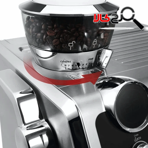 یکی از امکانات تحسینبرانگیز این مدل، آسیاب مخروطی فولاد ضدزنگ (Stainless Steel Burr Grinder) است. این آسیاب داخلی مجهز به ۸ سطح تنظیم زبری دانهها است، تا کاربر بتواند درجهی آسیاب را متناسب با نوع قهوه و شدت عصارهگیری دلخواه خود تنظیم کند. این ویژگی، کنترل کاملی بر فرآیند استخراج فراهم میسازد و امکان آزمایش سبکهای مختلف قهوه مانند اسپرسو، ریسترتو یا لانگو را به سادگی میدهد.