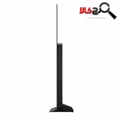 این تلویزیون جذاب با رنگ مشکی دارای ضخامت بدنه 4.51 سانتیمتر است که حتی باریک‌تر از یک تلفن همراه است. بخش پایین تلویزیون که شامل پورت‌های مختلف است، کمی بلندتر است. نگاهی به پشت تلویزیون می‌اندازید که طراحی خلاقانه آن با ابر و باد یا طرح سنگ از جنس پلاستیک است. پایه تلویزیون از فلز و پلاستیک ساخته شده و در وسط تلویزیون قرار دارد و حداقل فضای قرارگیری را اشغال می‌کند؛ بنابراین نیازی به یک میز بزرگ برای نصب ندارید. همچنین این تلویزیون قابل نصب بر روی دیوار است تا نیازی به میز نیز نداشته باشید.