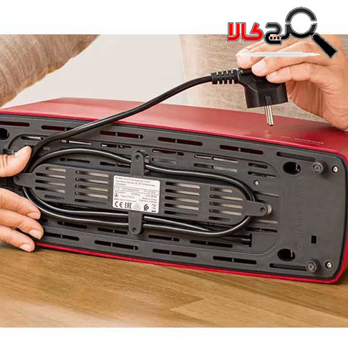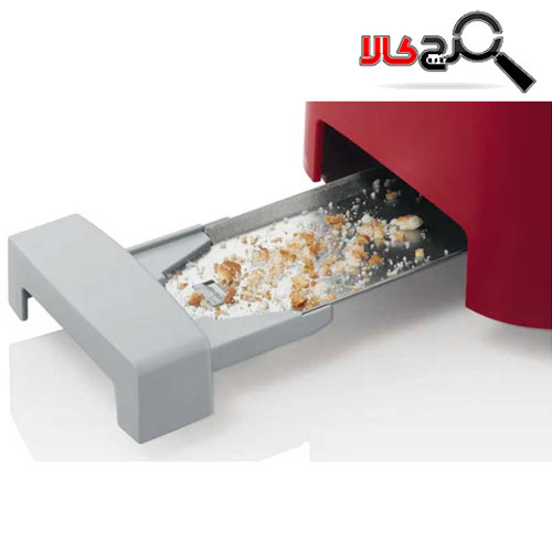 یک سینی در پایین توستر برای جمع آوری خرده نان ها وجود دارد که به راحتی قابل باز و شستشو است. طول سیم برق توستر 100 سانتیمتر است و یک محفظه زیر دستگاه برای ذخیره سیم طراحی شده است که زیبایی به آشپزخانه می بخشد و سیم را محافظت می کند.