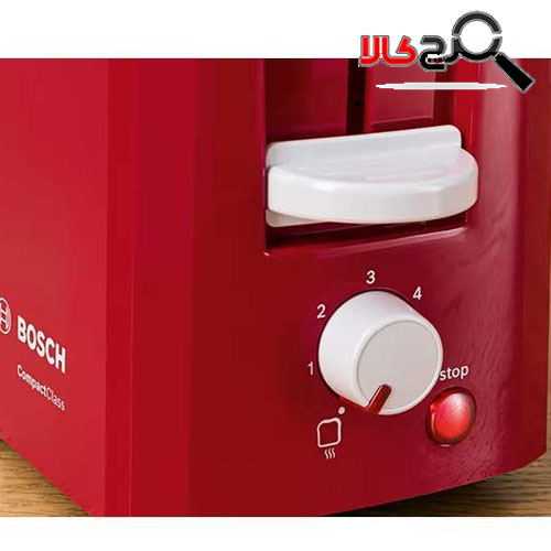 روی توستر BOSCH TAT3A004 دکمه های مختلفی برای تنظیم نرمی و دکمه متوقف کردن عملیات با نشانگر LED وجود دارد که زیبایی و کارایی دستگاه را بهبود می بخشد. یک شکاف بزرگ در بالای توستر است که به راحتی می توان یک نان بزرگ یا دو نان تست یا شیرینی را در آن قرار داد. با فشردن دکمه، نان ها به سمت بالا باز می شوند و آماده برداشتن هستند.