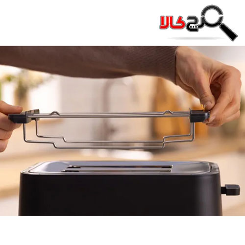 سینی کشویی در قسمت پایین برای جمع آوری خرده نان ها طراحی شده است تا از کثیف شدن میز و کابینت جلوگیری کند. این سینی به راحتی قابل شستشو است. طول سیم برق این توستر ۱۰۰ سانتیمتر است و یک محفظه برای جمعآوری سیم زیر بدنه دستگاه وجود دارد که به مرتب بودن محیط اطراف کمک میکند.