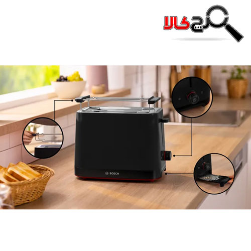 توستر نان بوش مدل TAT3M123 با طراحی زیبا به رنگ مشکی در دسترس است. این دستگاه جمع و جور و سبک است و فضای کمی را اشغال می کند، بنابراین قبل از صبحانه نان ها را داغ و برشته کنید تا از صبحانه لذت ببرید. بدنه مقاوم و ایمن توستر از جنس پلاستیک ساخته شده است تا دست شما در حین استفاده از آن نسوزد.
