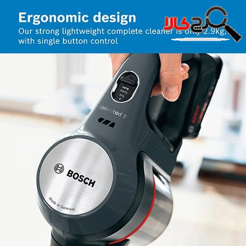 جاروشارژی بوش سری 7 مدل BCS711GB با باتری قوی لیتیوم یون با ولتاژ 18 ولت، زمان شارژ دهی آن حدود 5 ساعت و پس از آن تا 40 دقیقه عملکرد مناسبی را ارائه می‌دهد. نشانگر وضعیت شارژ باتری بر روی بدنه، میزان شارژ باتری را به ما اطلاع می‌دهد.