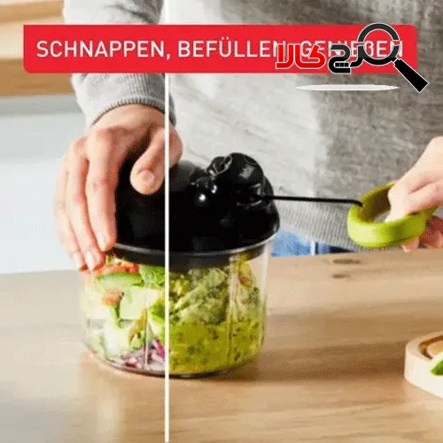 یک خرد کن سریع و آسان بدون نیاز به برق قابل استفاده برای خرد کردن انواع سبزیجات ، میوه ها ، آجیل ، گوشت بدون استخوان و … مجهز به دو عدد تیغه بسیار مستحکم از جنس فولاد ضدزنگ دارای قطعات پلاستیکی هدایت کننده به منظور ثابت نگه داشتن مواد کاسه بزرگ شفاف با ظرفیت 900 میلی لیتر مجهز به سیستم قفل درب و پایه ضد لغزش امکان شستشو آسان ظرف و تیغه در ماشین ظرفشویی دسته ارگونومیک و خوش دست با روکش نرم لاستیکی کیفیت ساخت و طول عمر بالا طراحی زیبا و جذاب