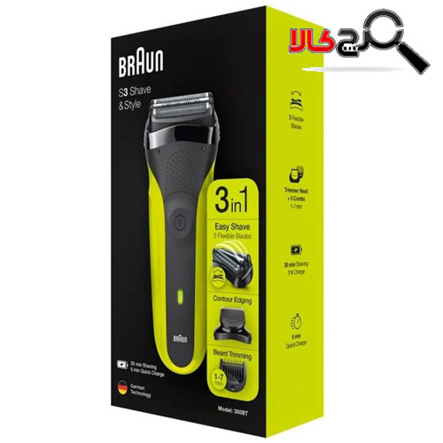 ماشین اصلاح براون مدل 300BT دارای تیغه هایی حساس به فشار، یک سری خط زن و پنج عدد شانه، برای اصلاح و کوتاه کردن ریش و ته ریش از شماره 1 تا 7 میلیمتر میباشد.
