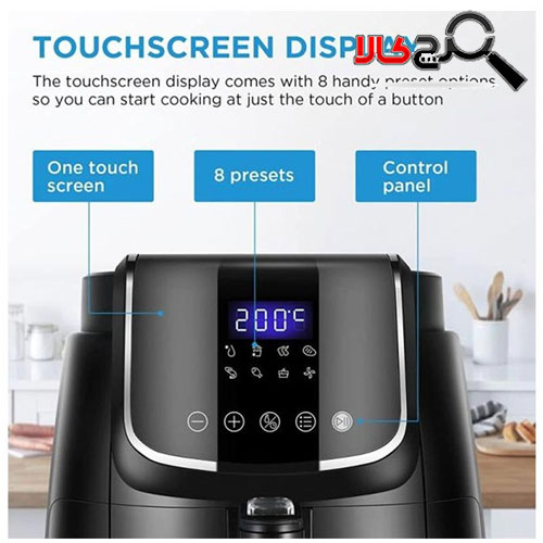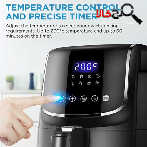 با استفاده از این محصول عالی میتوانید تا 80 درصد در مصرف روغن صرفهجویی کنید و غذاهای سالم و خوشمزه را به راحتی در خانه آماده کنید. این محصول دارای یک پنل هوشمند کاملاً لمسی با نمایشگر LED برای تنظیم دما و زمان است که علاوه بر استفاده آسان، طراحی فوقالعاده جذابی نیز دارد. با استفاده از پنل تنظیم دما میتوانید دما را از 80 تا 200 درجه تنظیم کنید.