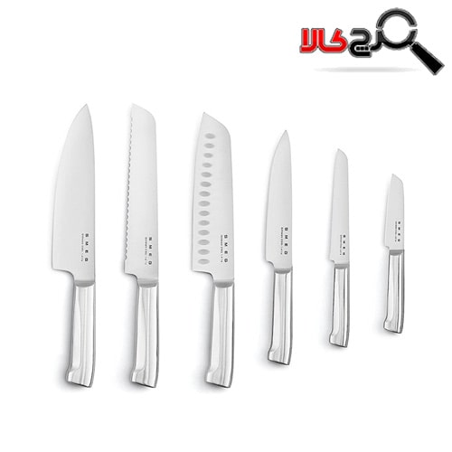 • ست شامل: چاقوی گوشت، نان، سرآشپز، سبزیجات، کاربردی، سانتوکو