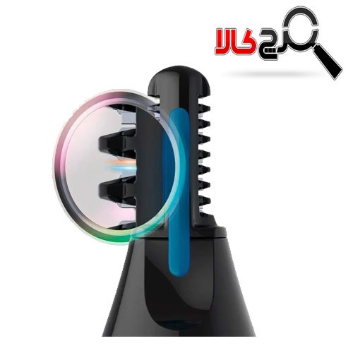 این دستگاه کوچک بسیار ظریف و کاربردی است، طوری طراحی شده است که زیبایی منحصر به فردی دارد. دارای یک سری تریمر باریک عمودی است که به راحتی وارد گوش و بینی شده و موهای زائد را از بین می برد، علاوه بر آن یک سری برای کوتاه کردن موهای ابرو دارد. این دستگاه ضد آب بوده و بعد از هر بار استفاده قابل شست و شو می باشد، و نیازی به روغن کاری ندارد.موزن بینی، گوش و ابرو