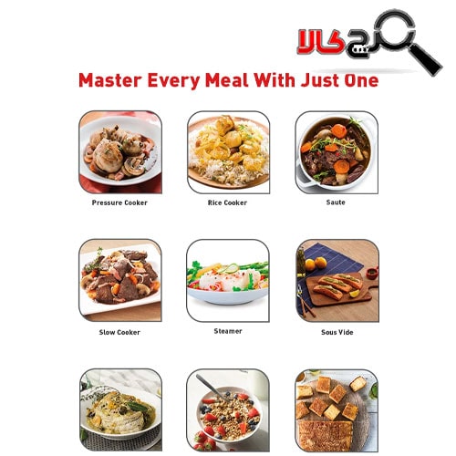 این مولتی کوکر دارای 15 برنامه پیشتنظیمشده برای پخت مختلف است که شامل پخت برنج، کلوچه و کیک، گوشت و سوپ میشود. این برنامهها شامل 2 برنامه آرامپزی (پخت آرام در سطح پایین و بالا)، تفت دادن، پخت مواد غذایی درون کیسه، پخت، غلیظ کردن سس، برنامه سرآشپز (تنظیم دستی زمان و دما)، پخت سریع برنچ، فرنی، گوشت گاو و بره، مرغ و اردک، سوپ، بخارپزی و برنامه پخت صدف آبالون میباشد.