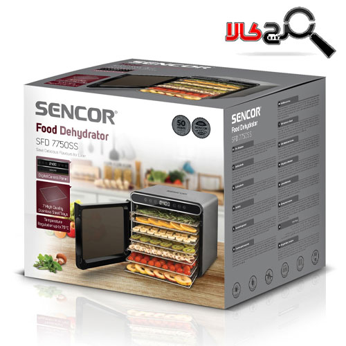 دستگاه خشک کن سنکور مدل SFD 7750 دارای کیفیت بالا و عملکرد فوق العاده است. با استفاده از این دستگاه میتوانید هر ماده ای را خشک کرده و به چیپس خوشمزه تبدیل کنید. طراحی زیبا و شکیل این دستگاه با رنگ مشکی/نقره ای و 7 طبقه برای قرار دادن میوه ها، سبزیجات و صیفی جات مورد نظر شما طراحی شده است. در بالای بدنه، یک پنل باریک و کشیده با دکمه های لمسی برای تنظیمات دلخواه و نمایشگر زمان قرار دارد.