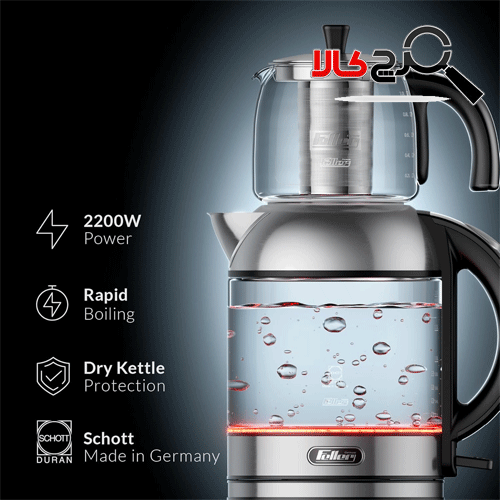 - کتری با ظرفیت ۲ لیتر: امکان جوش آوردن مقدار زیادی آب را برای سرو چای و نوشیدنیهای گرم دیگر فراهم میکند. جنس بدنه کتری از استیل ضد زنگ است که نه تنها به سرعت حرارت را حفظ میکند، بلکه مقاومت بالایی در برابر زنگزدگی و رسوبات دارد و تمیز کردن آن را نیز آسان میسازد.